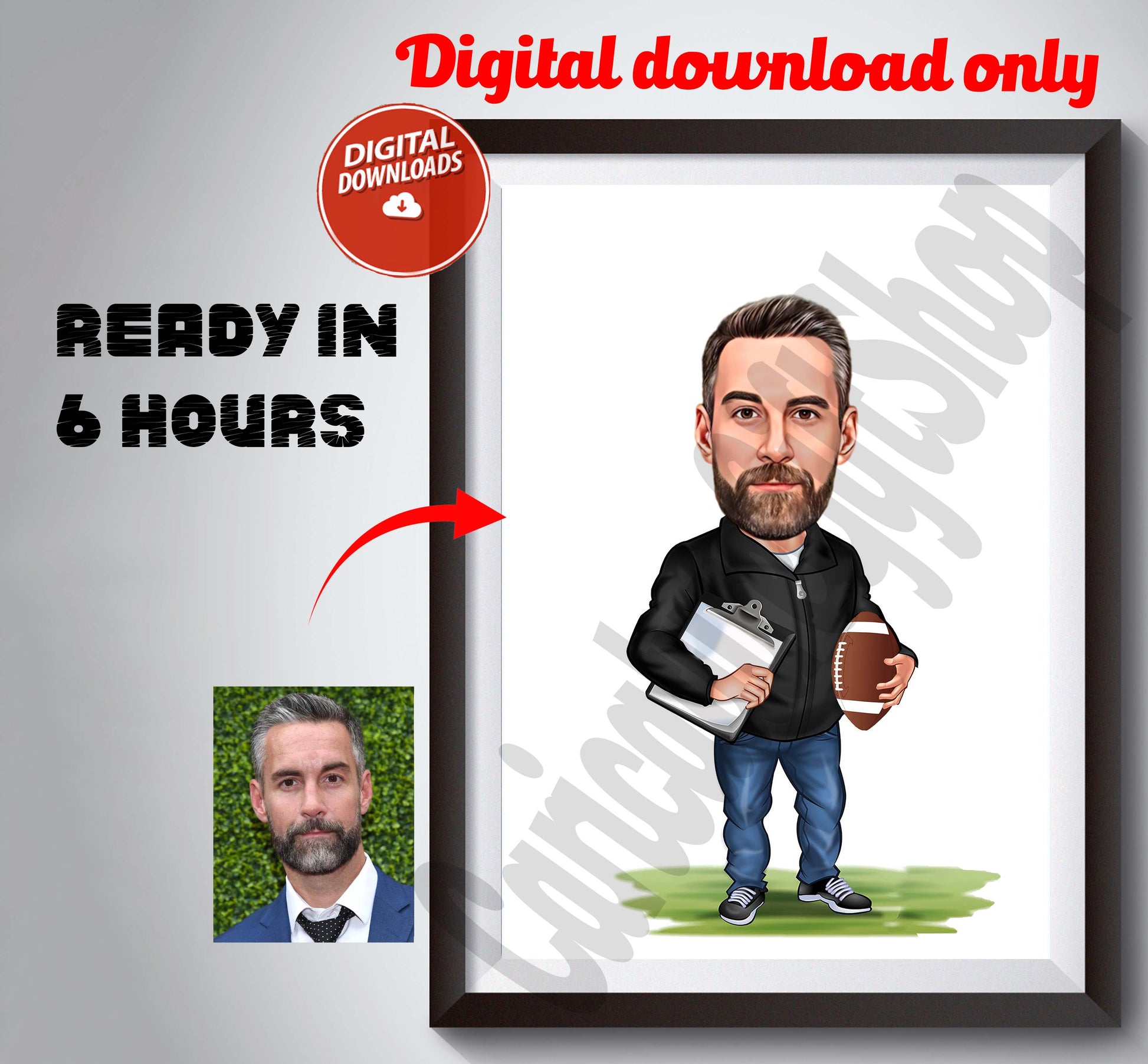3️⃣ Receive your one-of-a-kind American Football Coach caricature