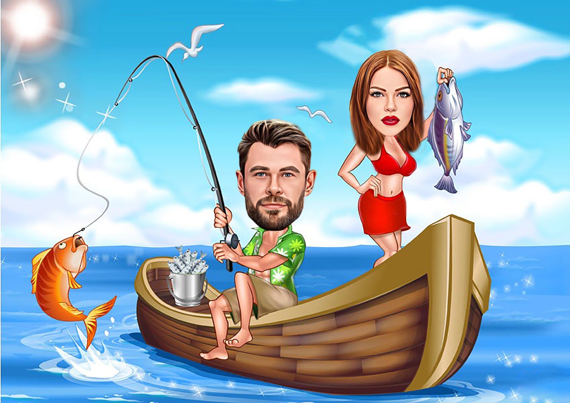 3️⃣ Receive your one-of-a-kind couple fishing caricature