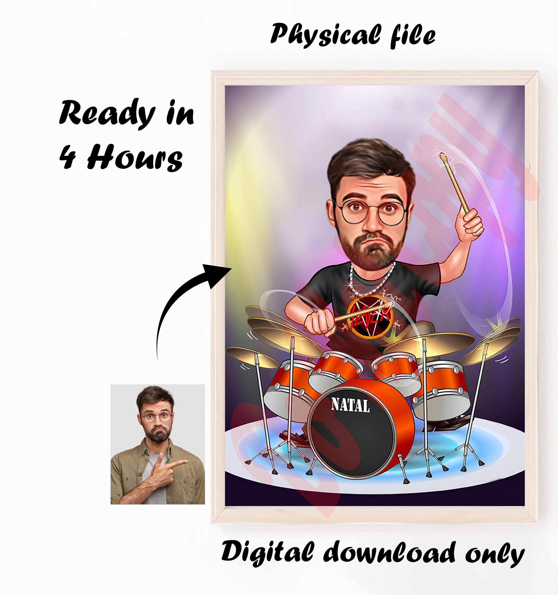 Personalized Drummer Caricature from Photo – Unique Digital Gift 🥁🎶