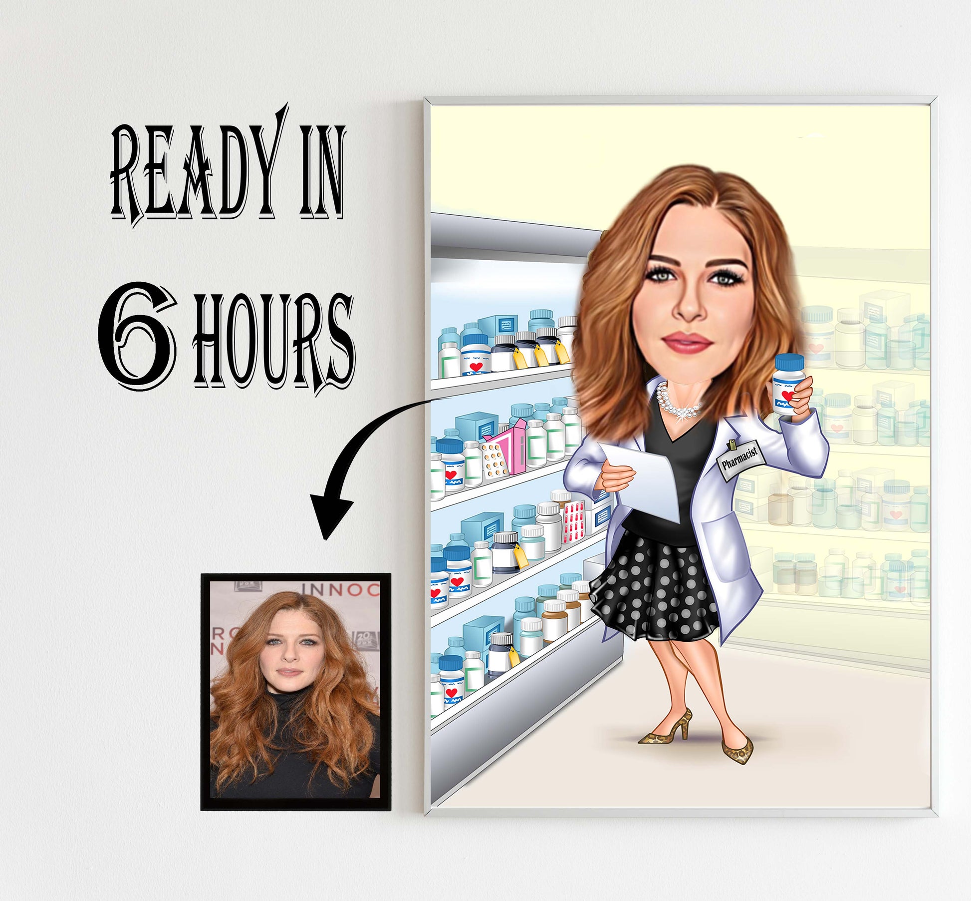 Female Pharmacist Gift for Women, Pharmacist Caricature from Photo, Pharmacist Drawing Art, Funny Pharmacist Portrait, Pharmacy Cartoon Draw