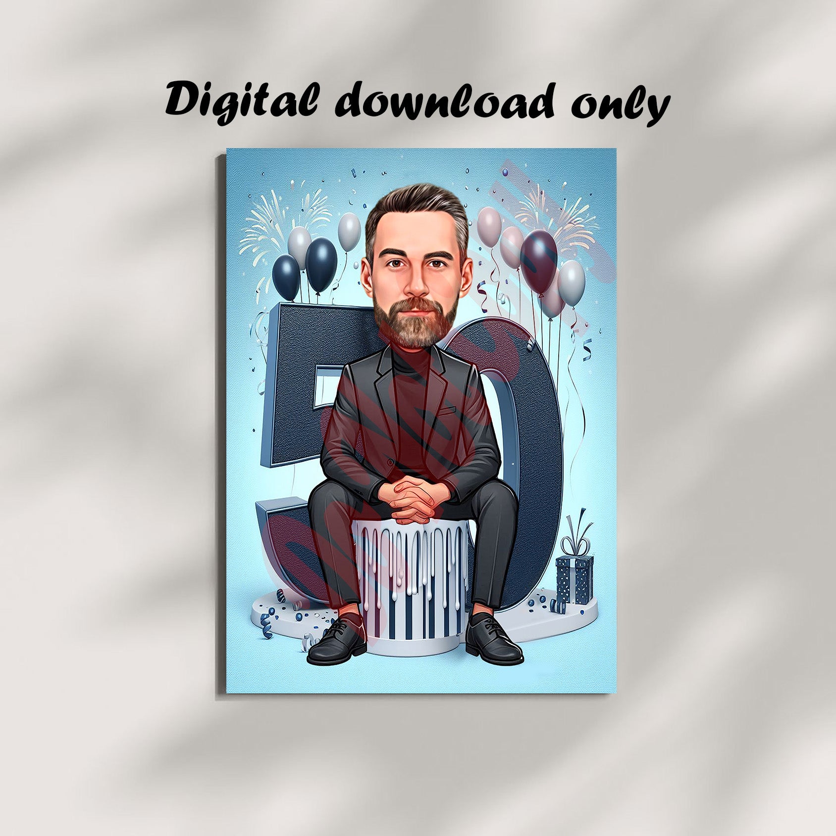 Personalized 50th Birthday Caricature from Photo – Unique Digital Gift 🎉✨