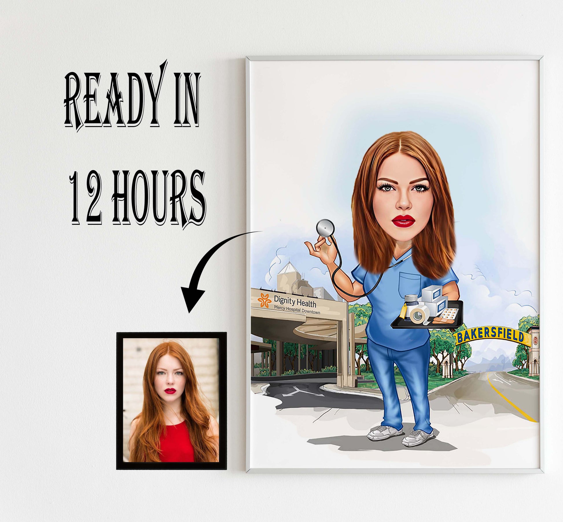 3οΈβ£ Receive your personalized Female Nurse Caricature digitally