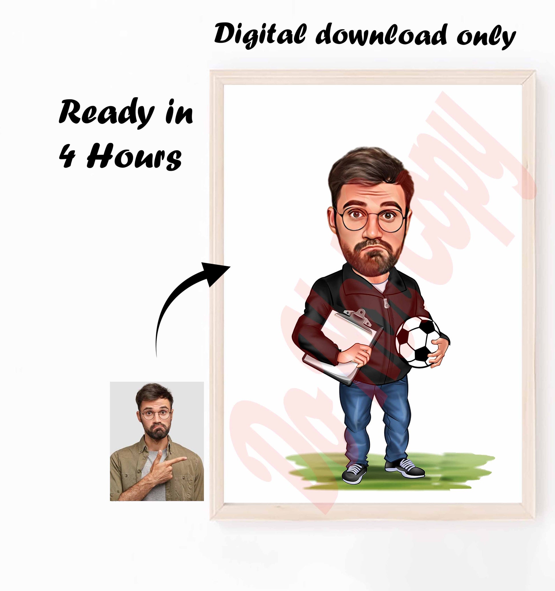Personalized Soccer Coach Caricature, Gift for Soccer Coach, Custom Coach Cartoon Portrait, Coach Caricature, Caricature from Photo