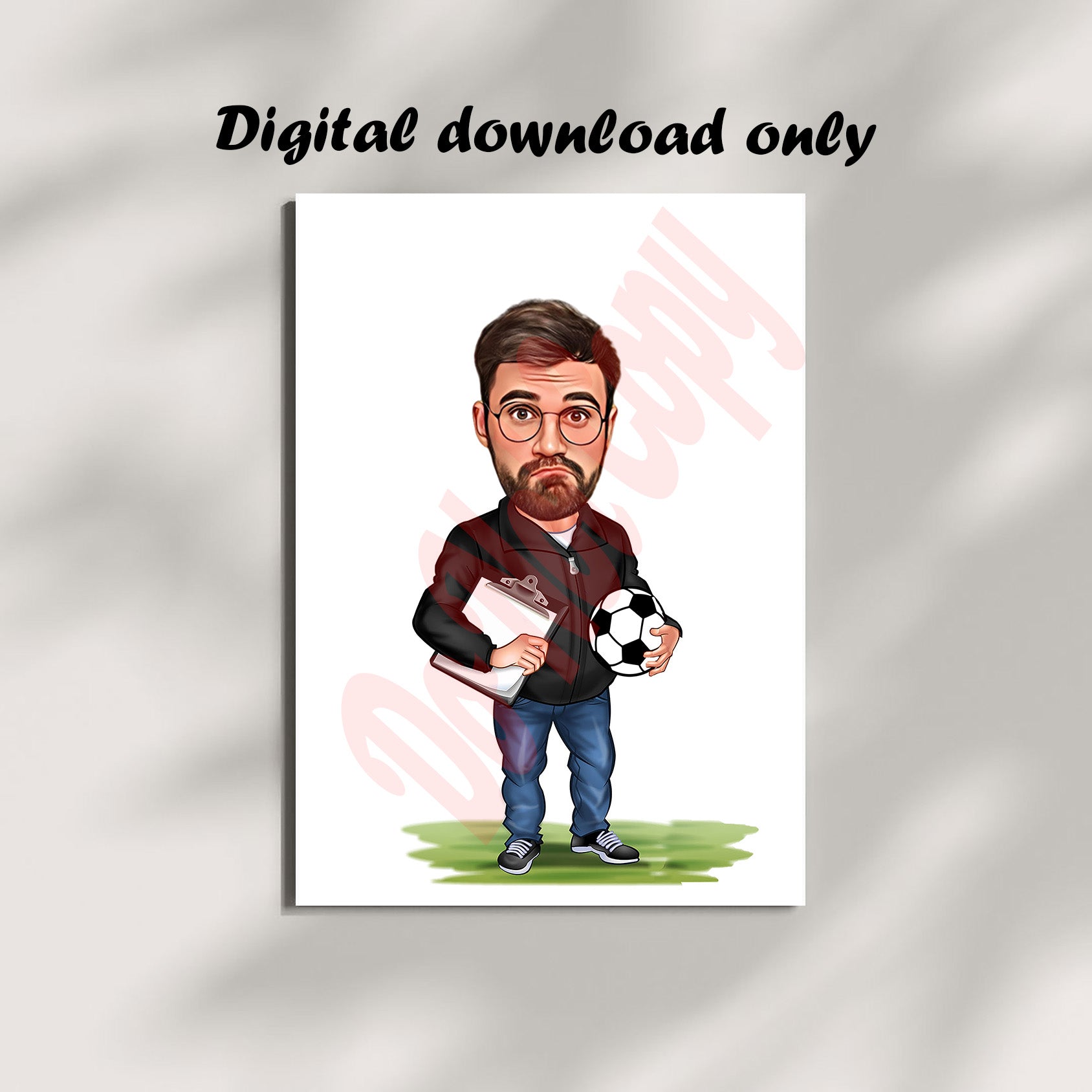Personalized Soccer Coach Caricature from Photo – Unique Digital Gift ⚽✨