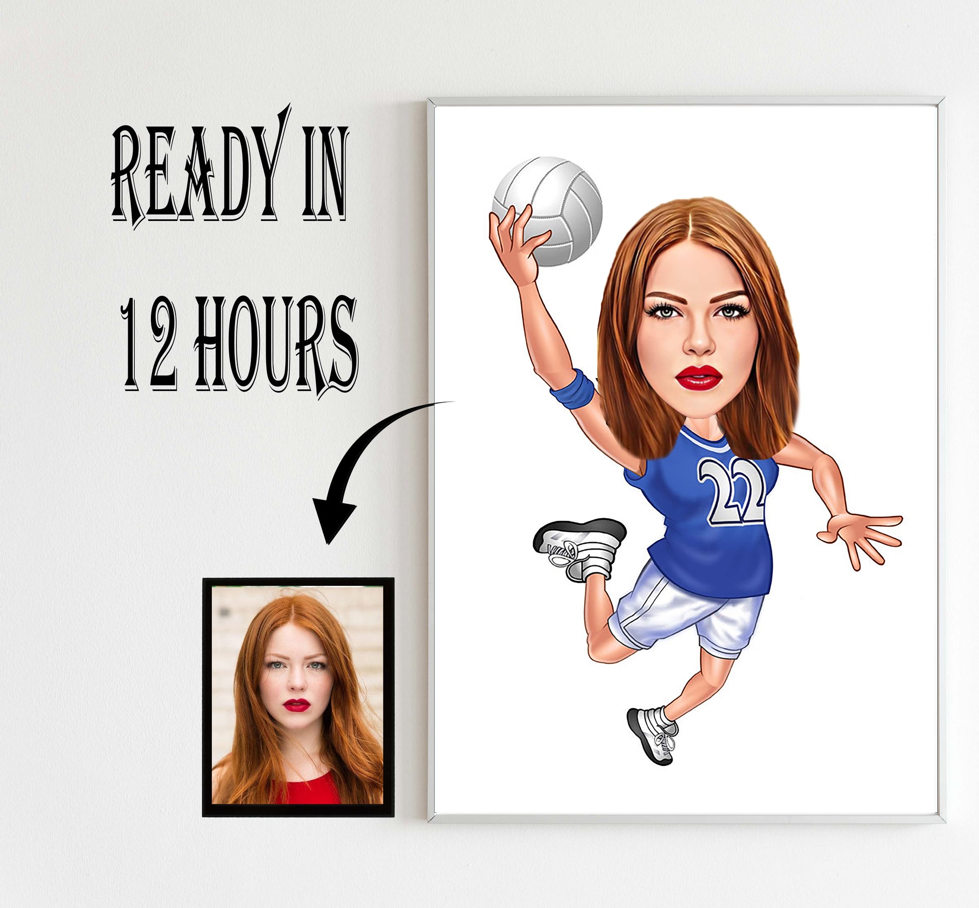 3️⃣ Receive your one-of-a-kind female volleyball caricature